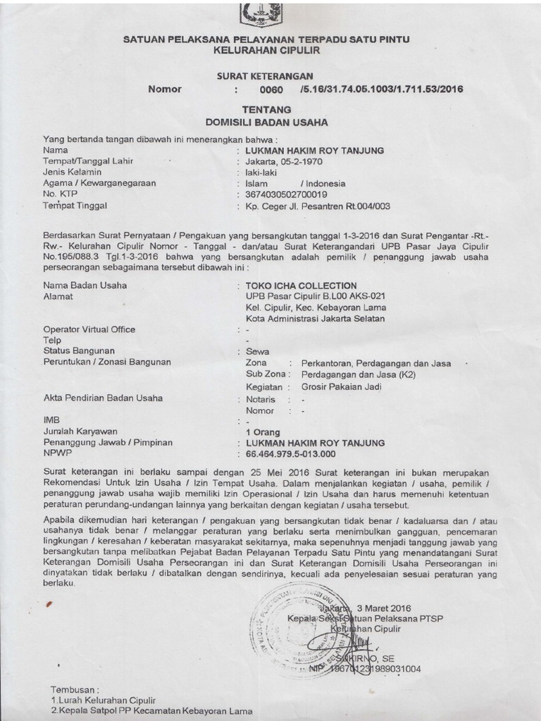 Surat Pernyataan Kedudukan Usaha Badan Usaha Pdf Pdf